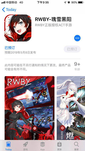 具体操作过程如下:搜索“RWBY”——选中“RWBY-瑰雪黑阳”——点击【预订】按钮——授权,订阅《RWBY》手游上线信息,即可游戏上线的第一时间下载安装。