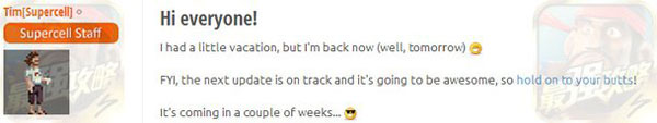 “失踪人口”——Tim,今日终于现身论坛,并为我们带来了关于游戏更新的最新消息~