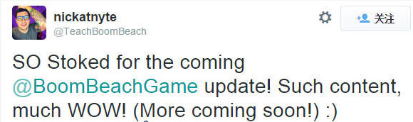 海岛奇兵最新消息:大更新将至!内容非常之多 国外知名COC+BB玩家“nickatnyte”,今天在推特上面发消息,透露《海岛奇兵》大更新即将到来,并且这次更新将包括大量新内容。